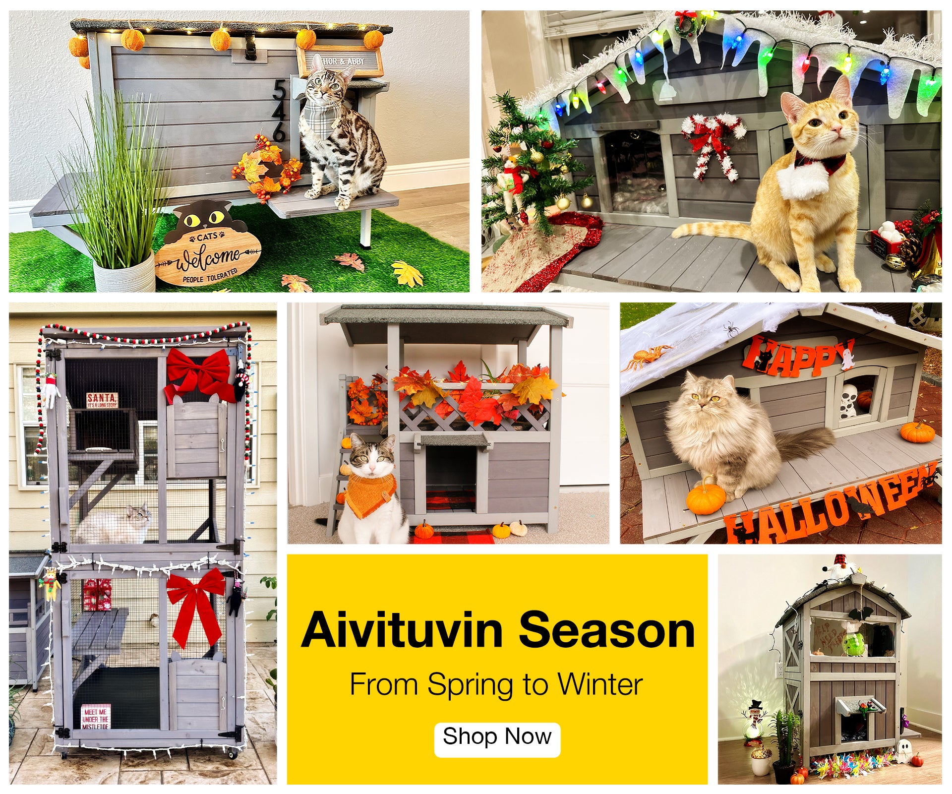 AIR7034-Aivituvin Wooden Outdoor Cat House | Waterproof Roof