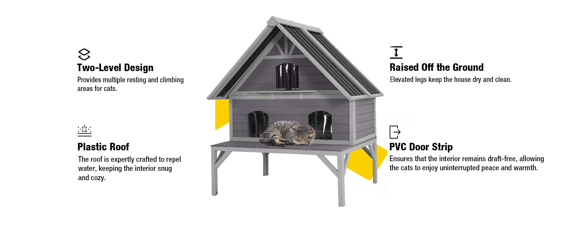 • Durable & Weatherproof: Solid wooden construction with a metal roof protects cats from rain, snow, and harsh sunlight.
